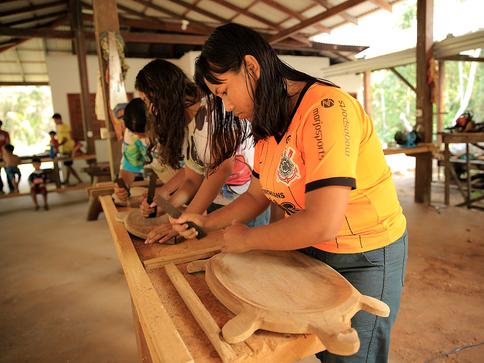 “Hoje colaboro com esse trabalho da CI-Brasil, trabalhei contratado para dar capacitação nesses projetos. Aqui pode se considerar um projeto de desmatamento zero. Nós não estamos vendendo uma mesa, um banco, estamos vendendo uma história e ajudando na conservação também, [diminuindo] o impacto na floresta, onde vive esse povo. Eu não conseguiria estar ensinando se não tivesse o apoio de ferramentas, materiais para fazer isso. Eu tenho esperança de que daqui a 30, 40 anos, ainda terá alguém vivendo de produtos da floresta”, conta.