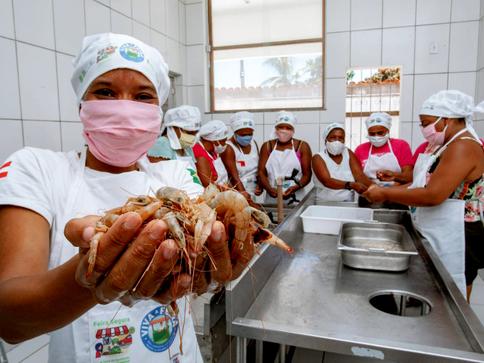 A Conservação Internacional e parceiros apoiam o fortalecimento institucional das marisqueiras e pescadoras de Belmonte com cursos práticos sobre beneficiamento de pescado, intercâmbio com outras unidades de beneficiamento, apoio na comunicação e identidade visual, diagnóstico e planejamento de vendas e mais.